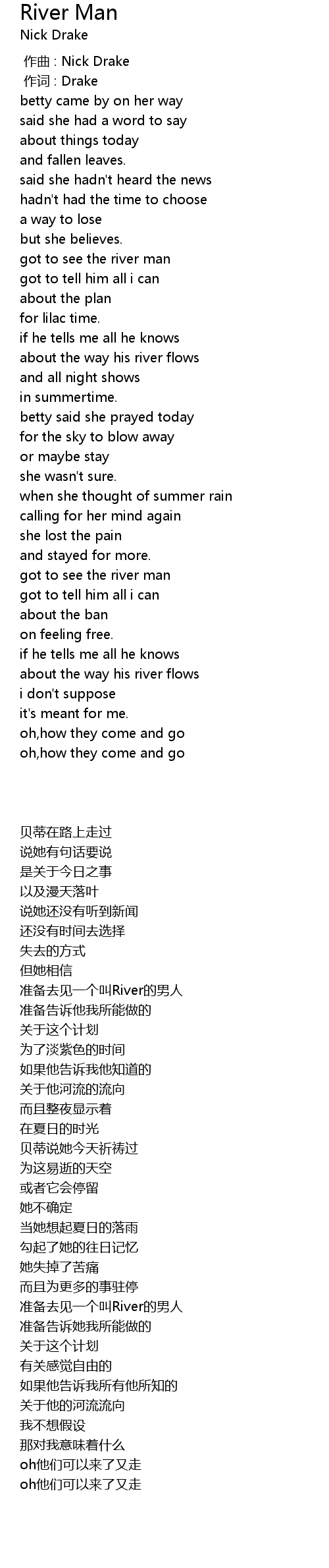| [00:00.00] | 作曲 : Nick Drake |