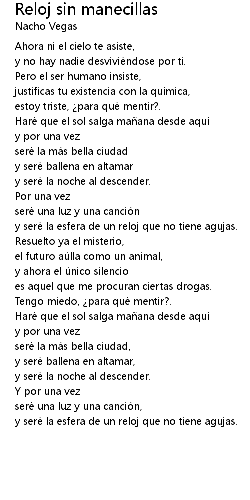 | y sere la esfera de un reloj que no tiene agujas. | |