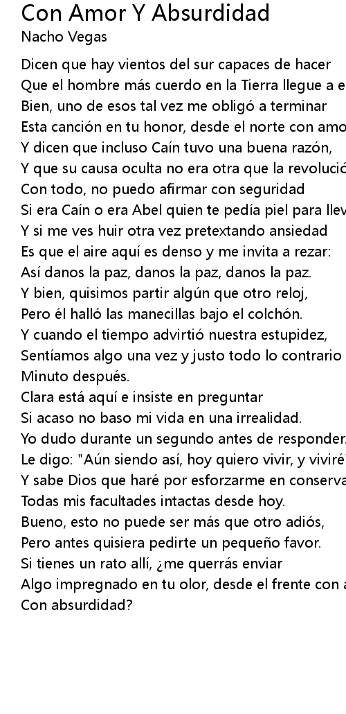 | Esta cancio n en tu honor, desde el norte con amor y con absurdidad. | |
