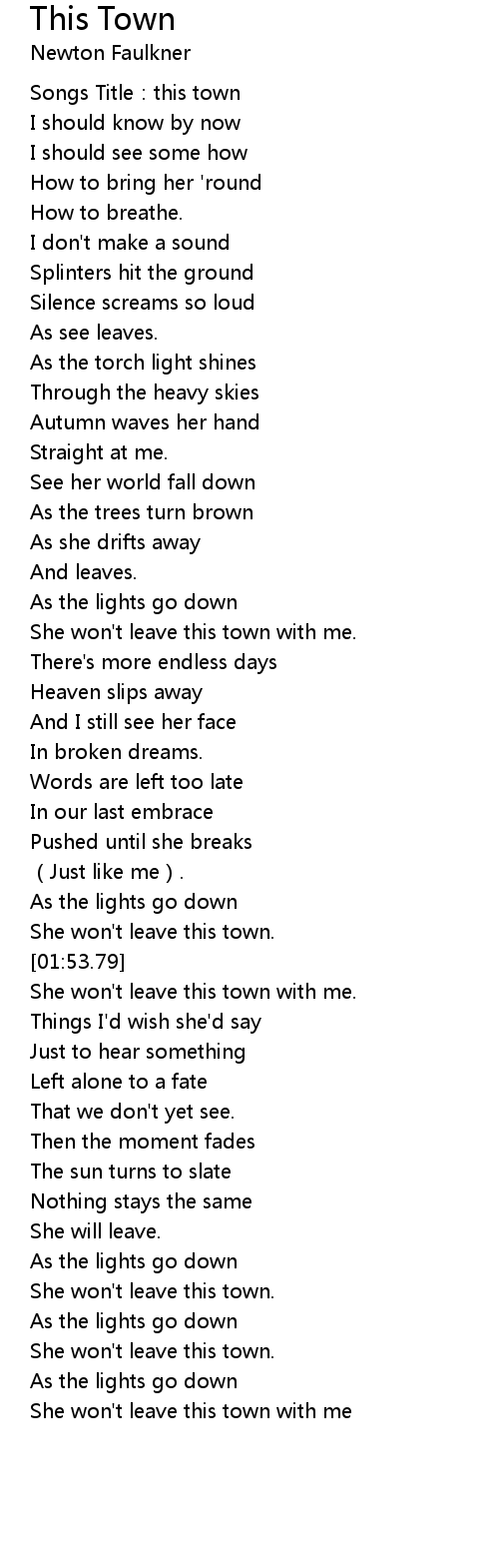 | [01:50.54] | She won' t leave this town. |