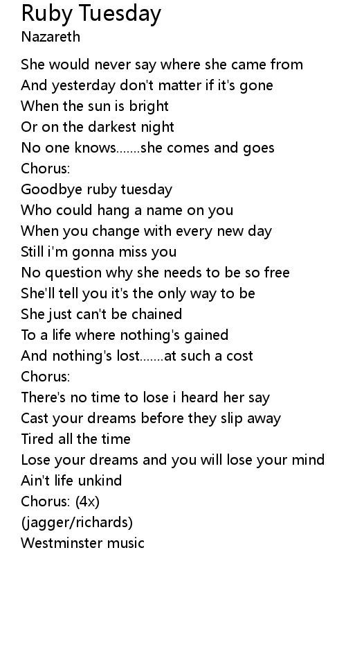 Ruby Tuesday Lyrics