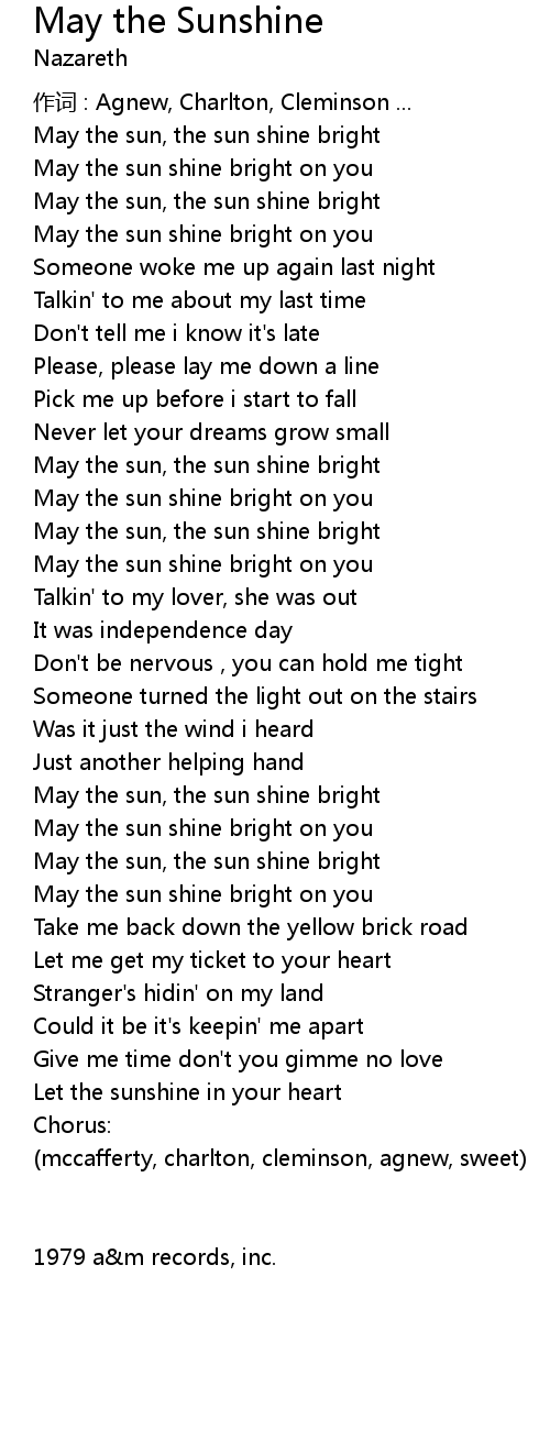 | May the sun, the sun shine bright | |