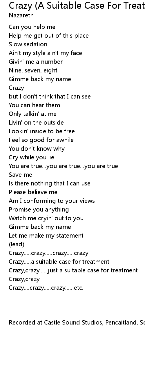 Crazy.....a suitable case for treatment |