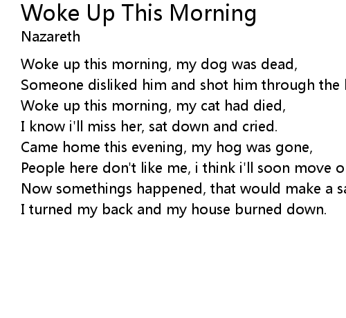 | Woke up this morning, my dog was dead, | |
