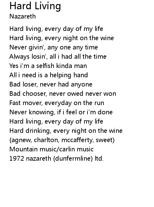 | Hard living, every day of my life | |