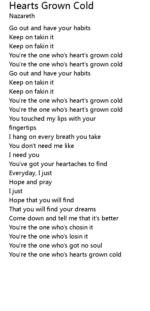 You're the one who's hearts grown cold |