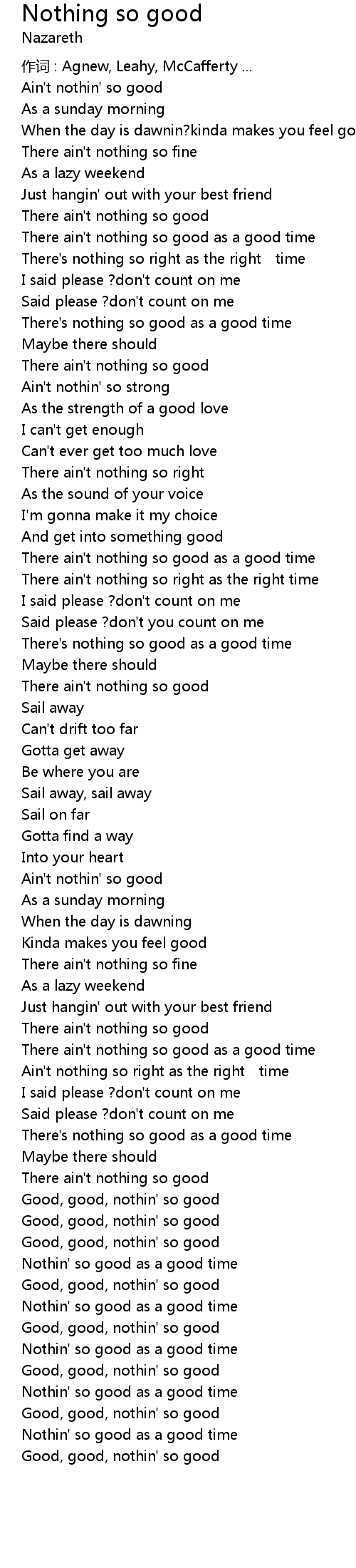 | Ain't nothin' so good | |