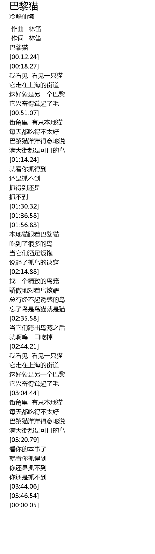 | [00:01.97] | 巴黎猫 |