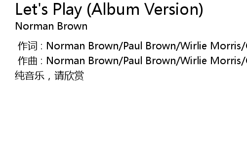 | [00:01.000] | zuo qu : Norman Brown Paul Brown Wirlie Morris Chris Bolden |