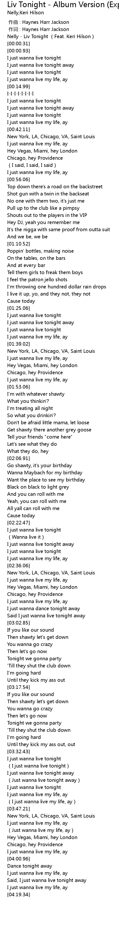 | [00:00.01] | Nelly - Liv Tonight (Feat. Keri Hilson) |