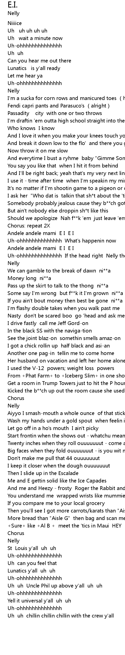 | [01:22.17] | Uh-ohhhhhhhhhhhhhh If the head right Nelly there every night |