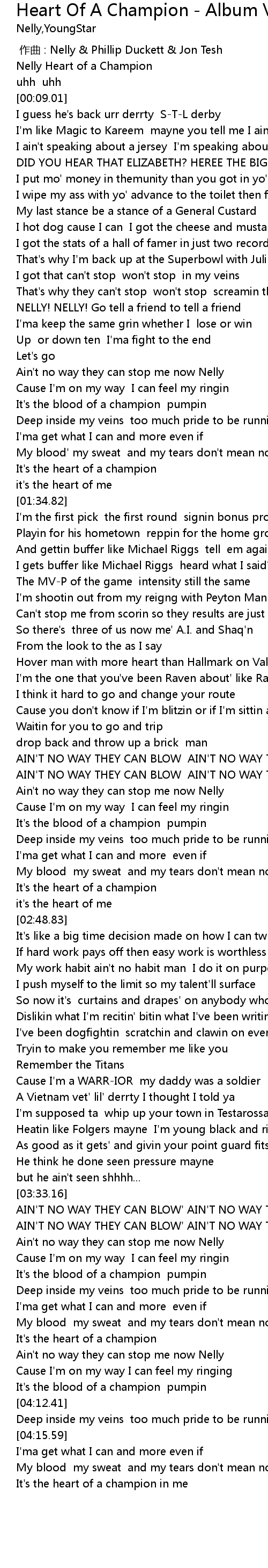 | [00:00.56] | Nelly Heart of a Champion |