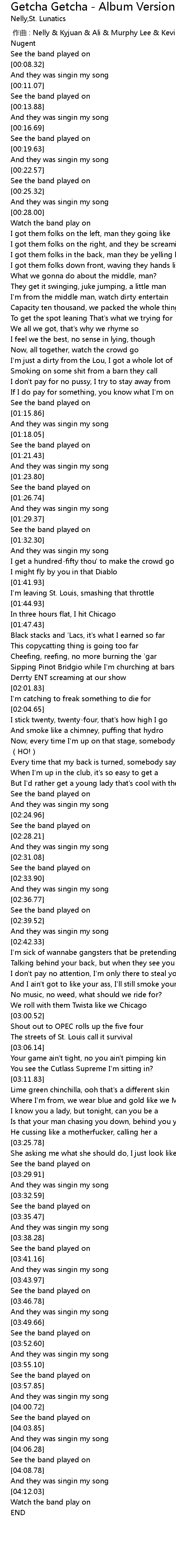 | [00:00.00] | zuò qǔ : Nelly Kyjuan Ali Murphy Lee Kevin Risto Wayne Nugent |