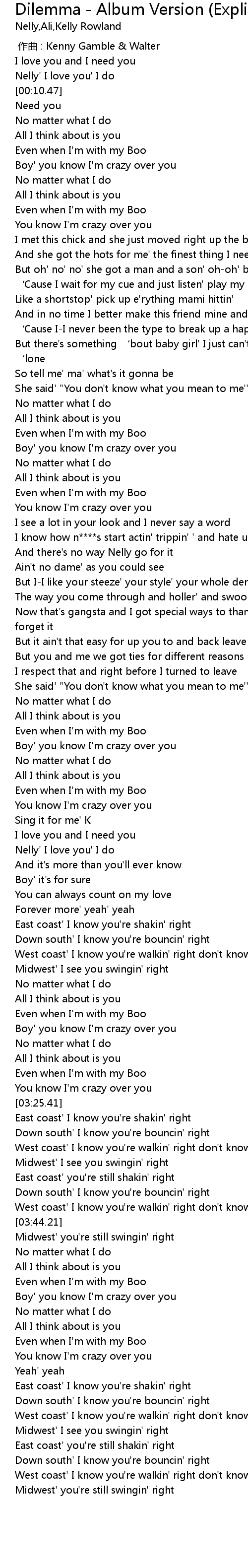 | [02:34.82] | Nelly' I love you' I do |