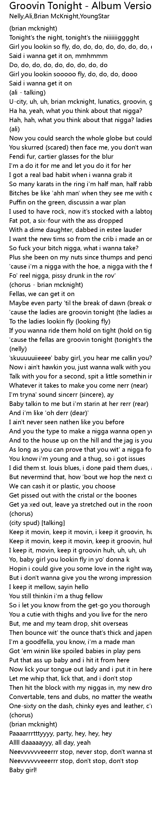 U-city, uh, uh, brian mcknight, lunatics, groovin, groovin, groovin tonight |