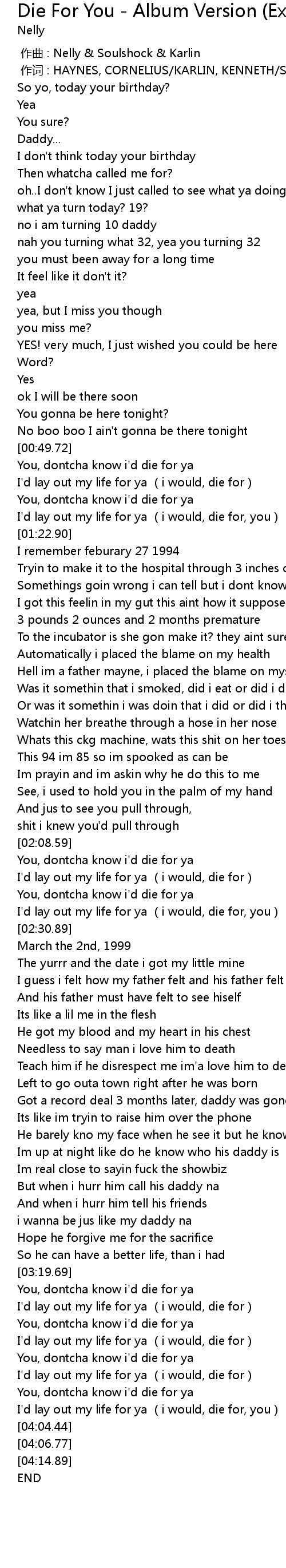 | [00:00.00] | 作曲 : Nelly & Soulshock & Karlin |