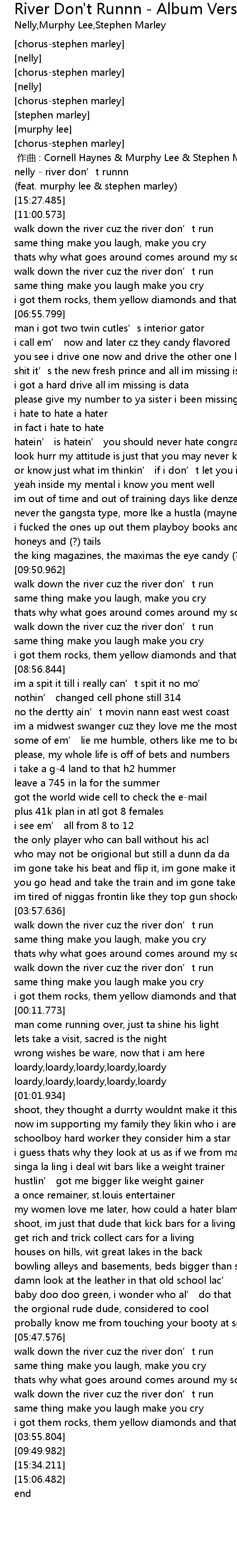 | [00:00.00] | 作曲 : Cornell Haynes & Murphy Lee & Stephen Marley & Dorian Moore |