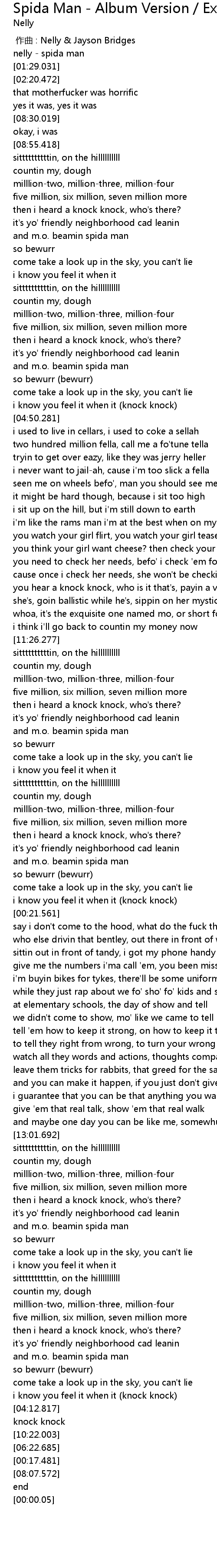 | [00:00.00] | 作曲 : Nelly & Jayson Bridges |