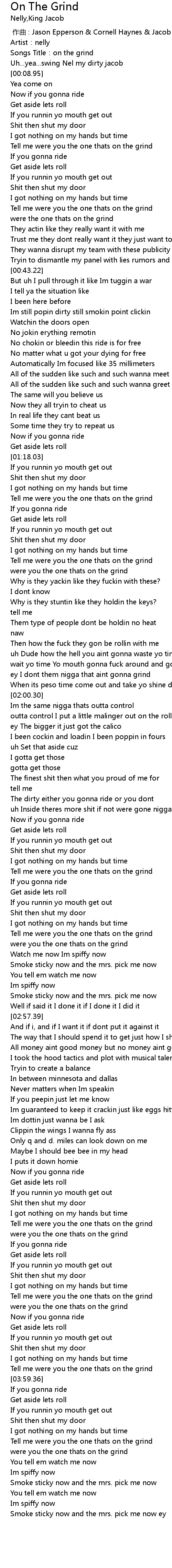| [02:42.83] | were you the one thats on the grind |