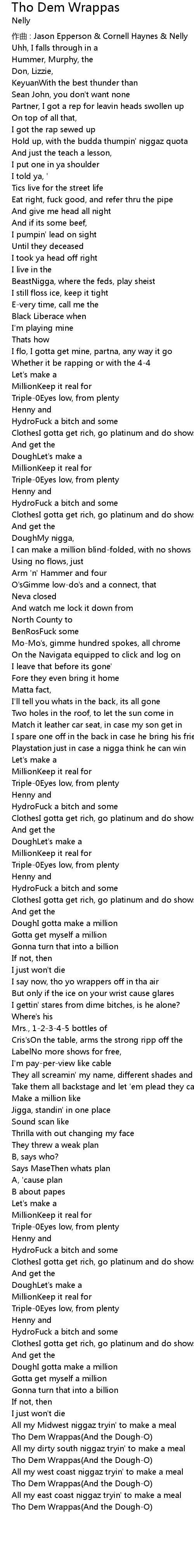 | 作曲 : Jason Epperson & Cornell Haynes & Nelly | |