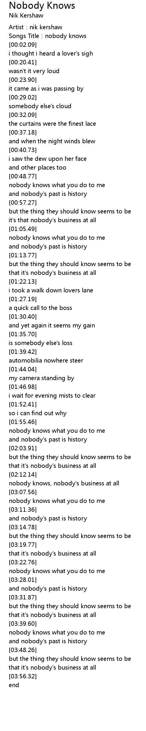 | [02:34.50] | nobody knows, nobody' s business at all |