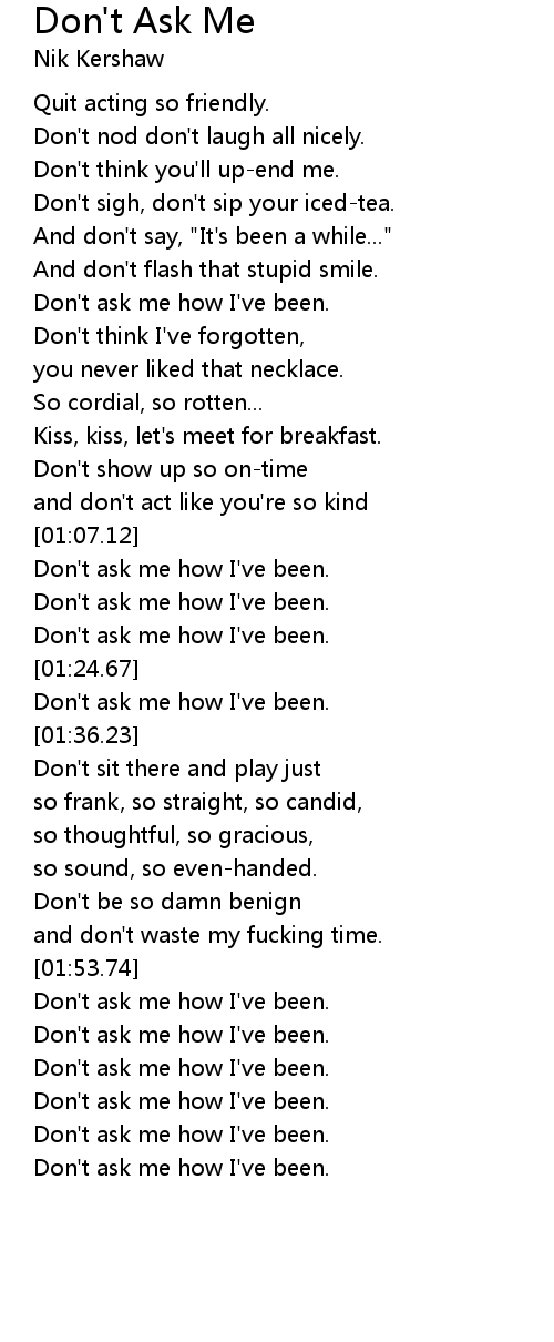 Don't ask me how I've been. |