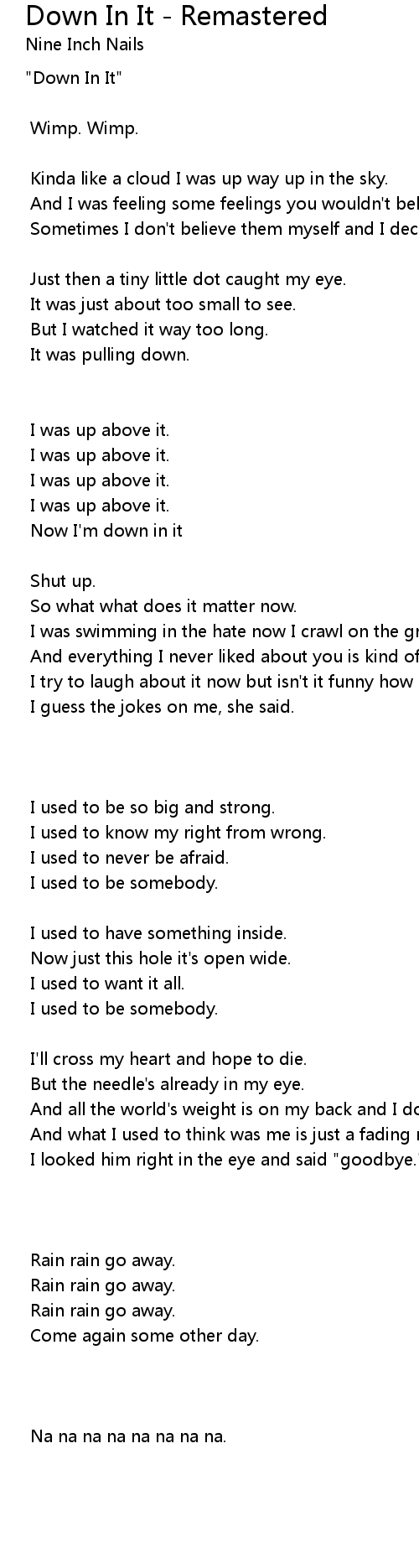 "Down In It" |