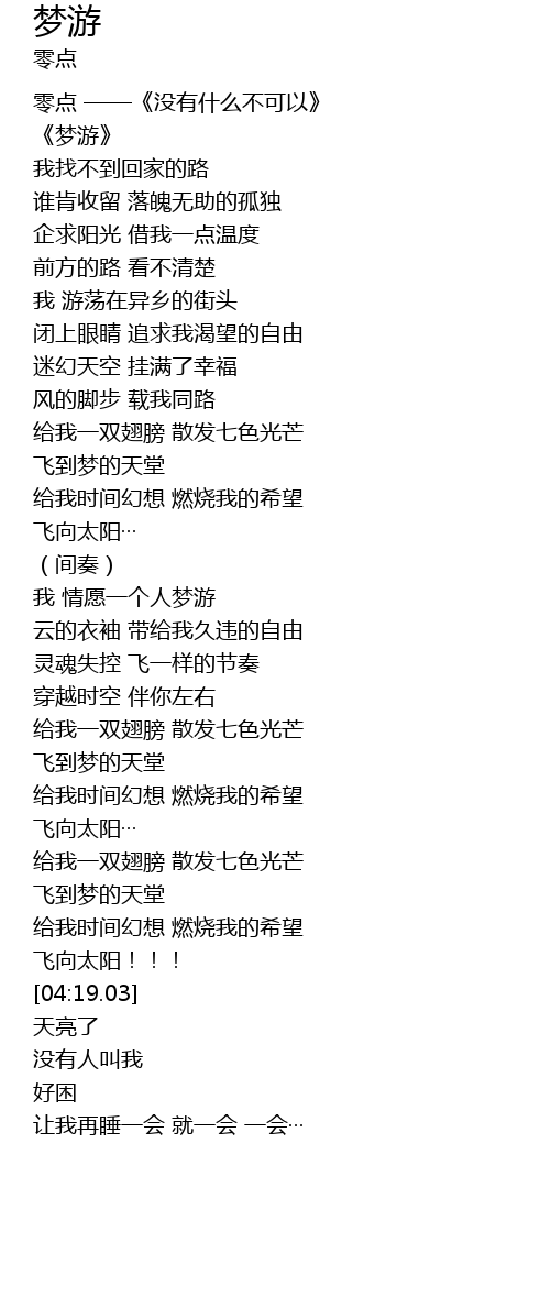| [00:12.11] | 零点 ——《没有什么不可以》 |