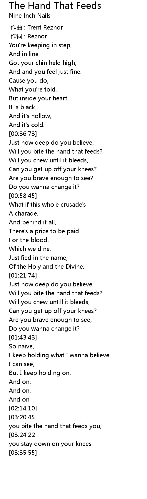 | [00:40.86] | Will you bite the hand that feeds? |