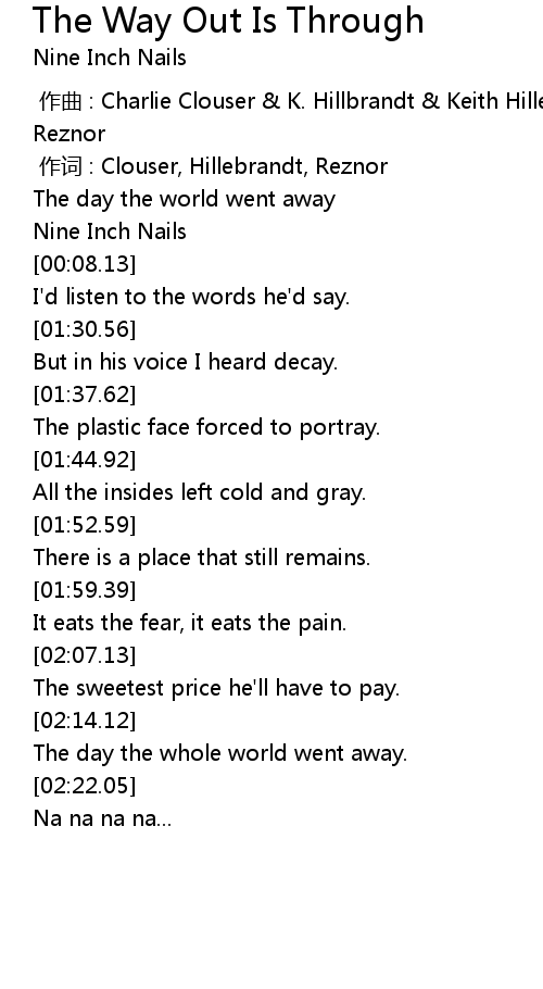 | [00:01.00] | 作词 : Clouser, Hillebrandt, Reznor |