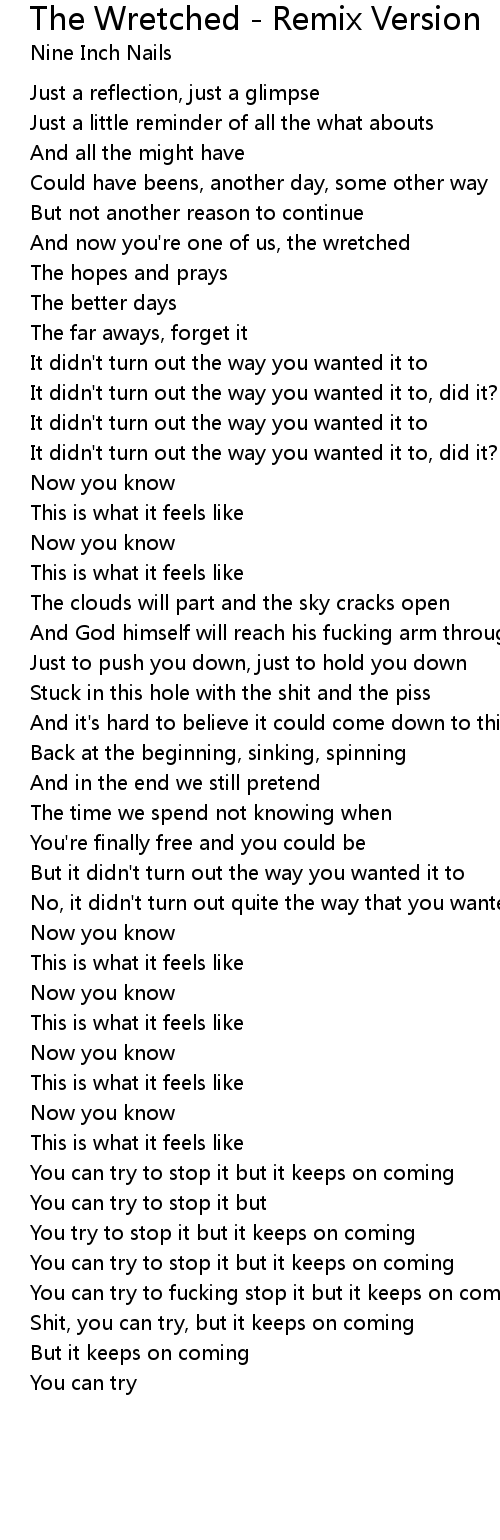 And now you're one of us, the wretched |