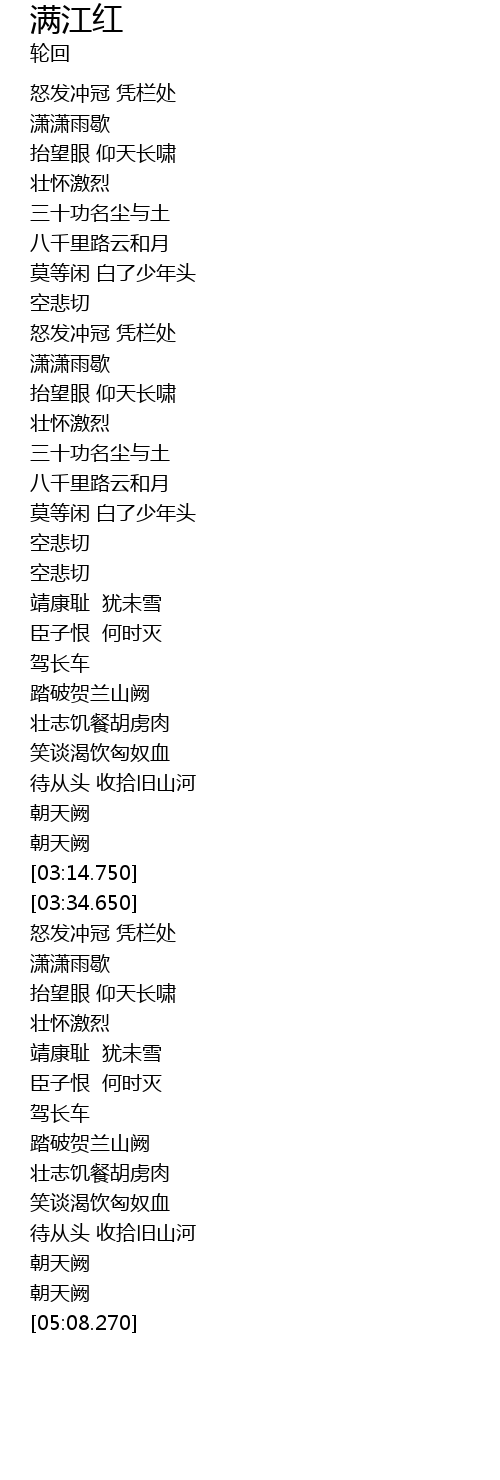 | [03:47.930] | 怒发冲冠 凭栏处 |