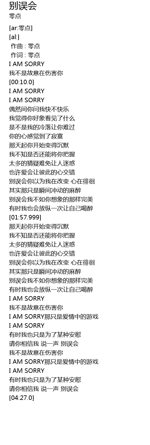 | [04:17.0] | 请你相信我 说一声 别误会 |