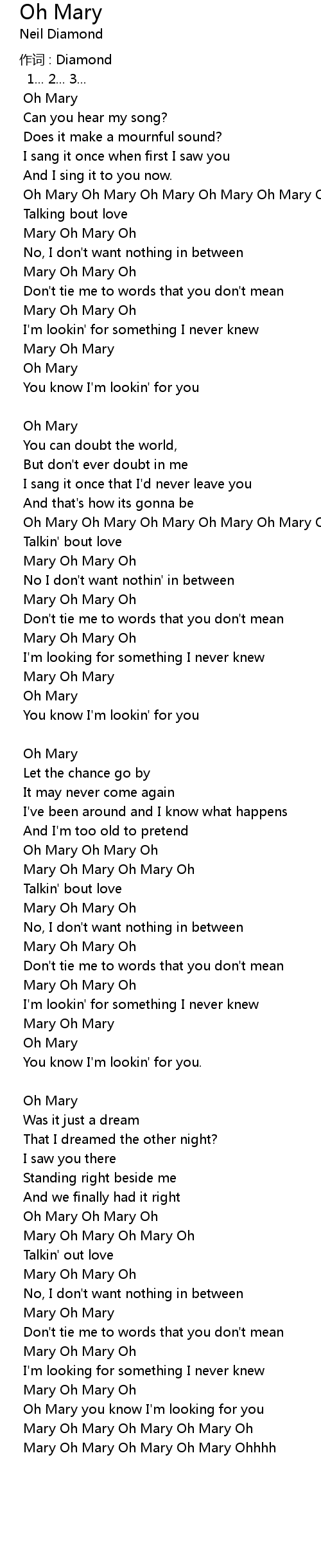 | Mary Oh Mary Oh Mary Oh Mary Ohhhh |