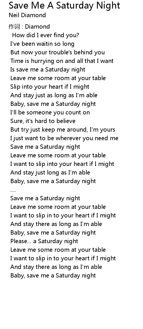 | Baby, save me a Saturday night | |