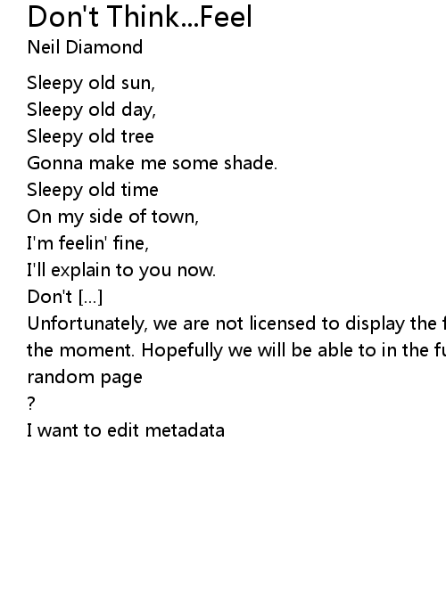 | Unfortunately, we are not licensed to display the full lyrics for this song at the moment. Hopefully we will be able to in the future. Until then, how about a | |