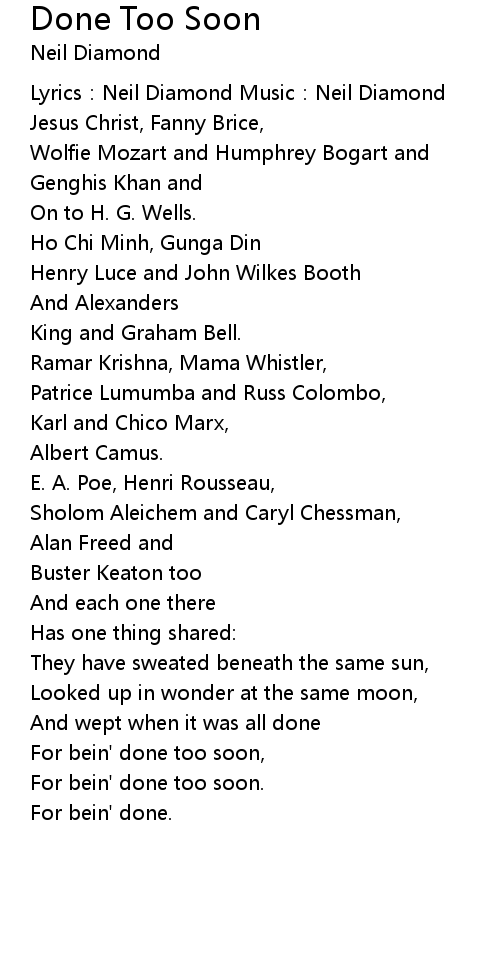 | Lyrics: Neil Diamond Music: Neil Diamond | |
