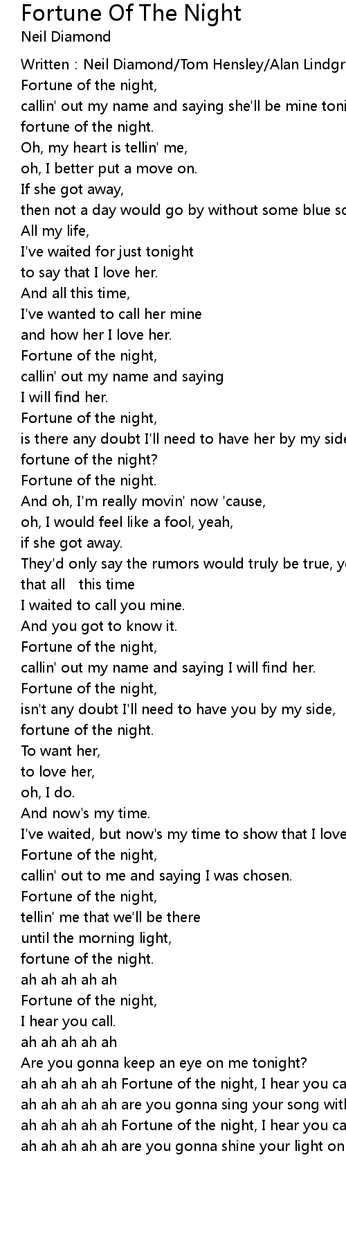 | Fortune of the night, | |