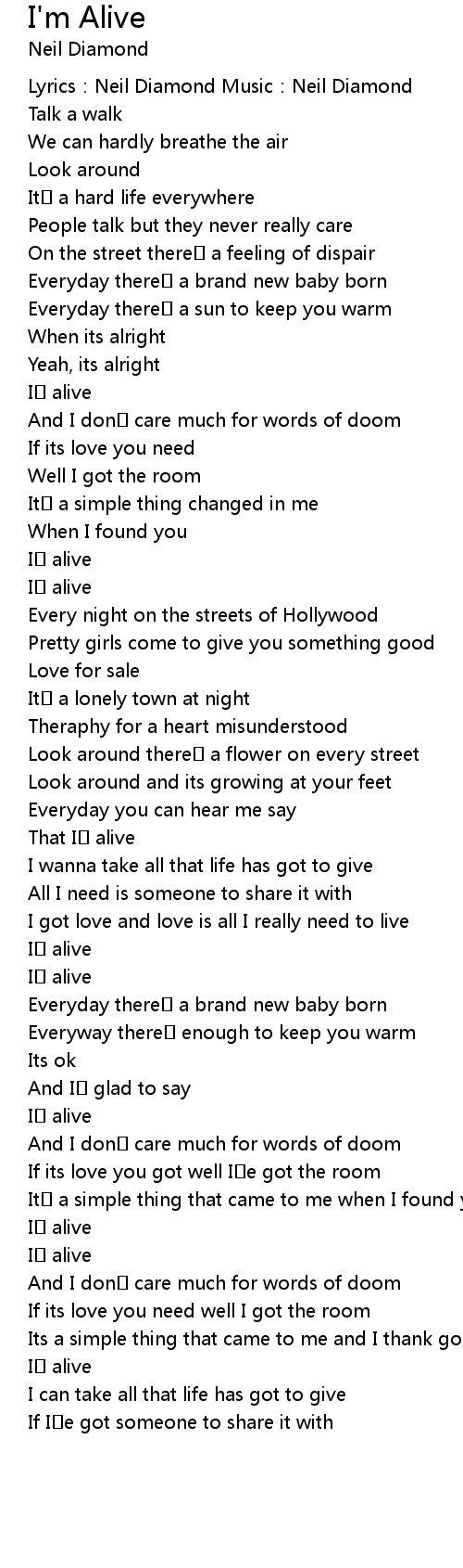 | Lyrics: Neil Diamond Music: Neil Diamond | |