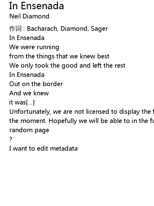 | Unfortunately, we are not licensed to display the full lyrics for this song at the moment. Hopefully we will be able to in the future. Until then, how about a | |