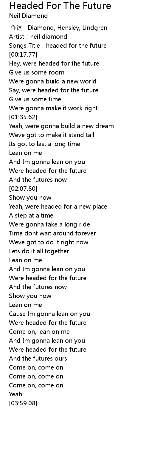 | [00:00.00] | 作词 : Diamond, Hensley, Lindgren |