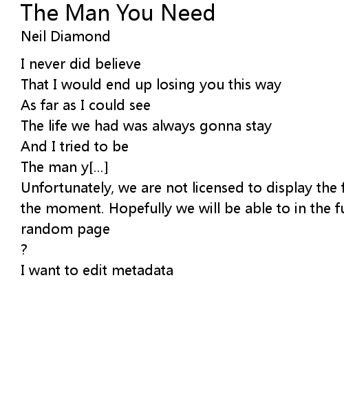 | Song | The Man You Need |