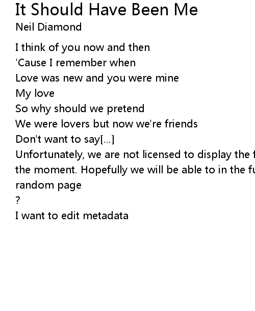 | Song | It Should Have Been Me |