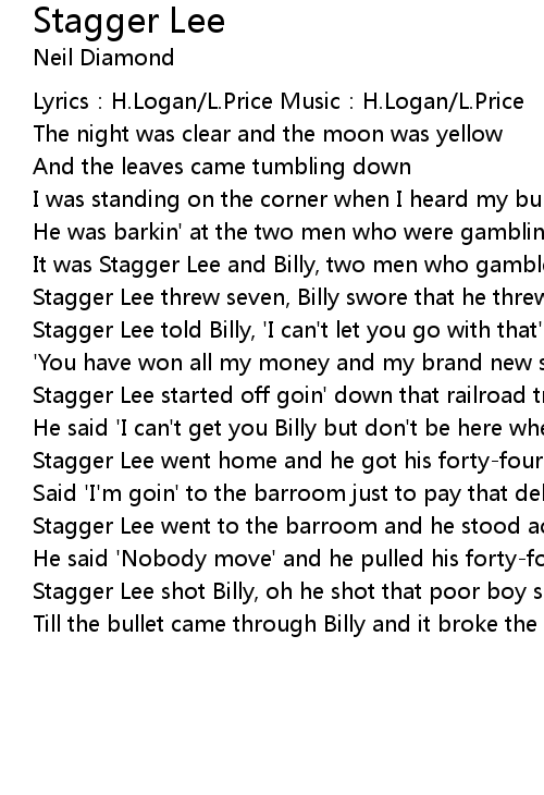 | Stagger Lee told Billy, ' I can' t let you go with that' | |