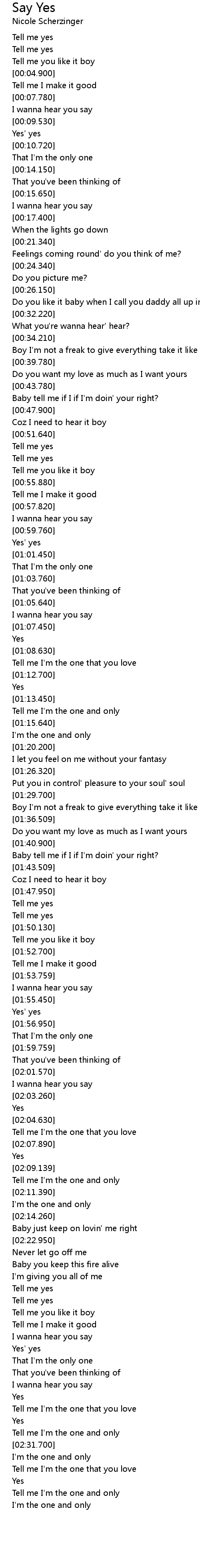 | [02:27.510] | Tell me yes |