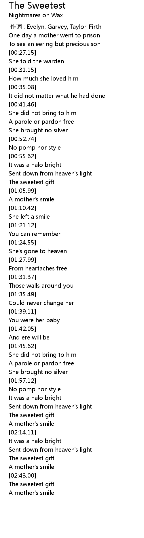 | [00:00.00] | 作词 : Evelyn, Garvey, Taylor-Firth |