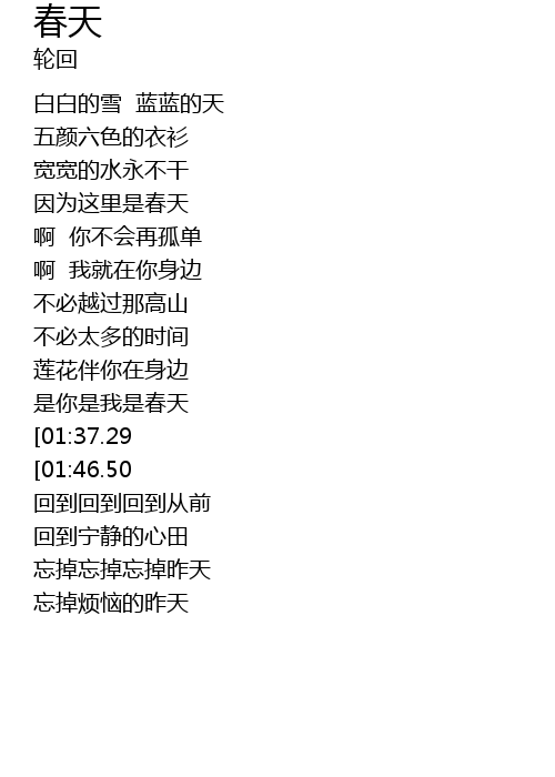 | [00:40.74] | 白白的雪 蓝蓝的天 |