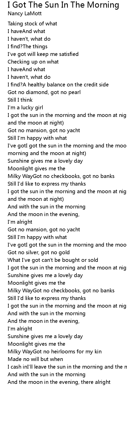 I've gotI got the sun in the morning and the moon at night(I got the sun in the morning and the moon at night) |