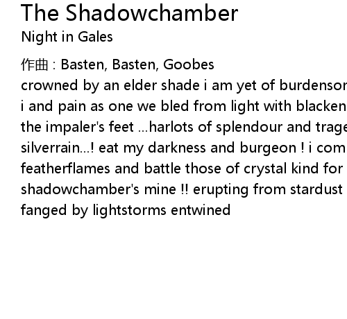 | crowned by an elder shade i am yet of burdensome origin a wrathvision, a scar... i and pain as one we bled from light with blackened marble eyes we cascade onto the impaler' s feet ... harlots of splendour and tragedy onward, harbinger of silverrain...! eat my darkness and burgeon ! i command the sphere of featherflames and battle those of crystal kind for yet another marbleaeon the shadowchamber' s mine !! erupting from stardust i devour the infinite furydream fanged by lightstorms entwined |