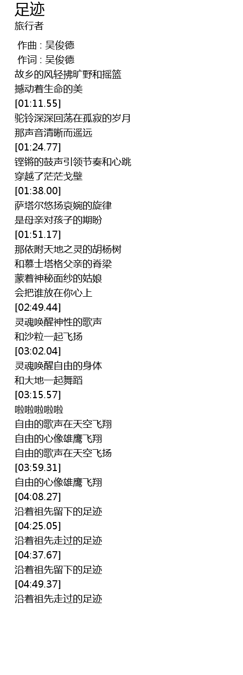 | [04:38.92] | 沿着祖先留下的足迹 |